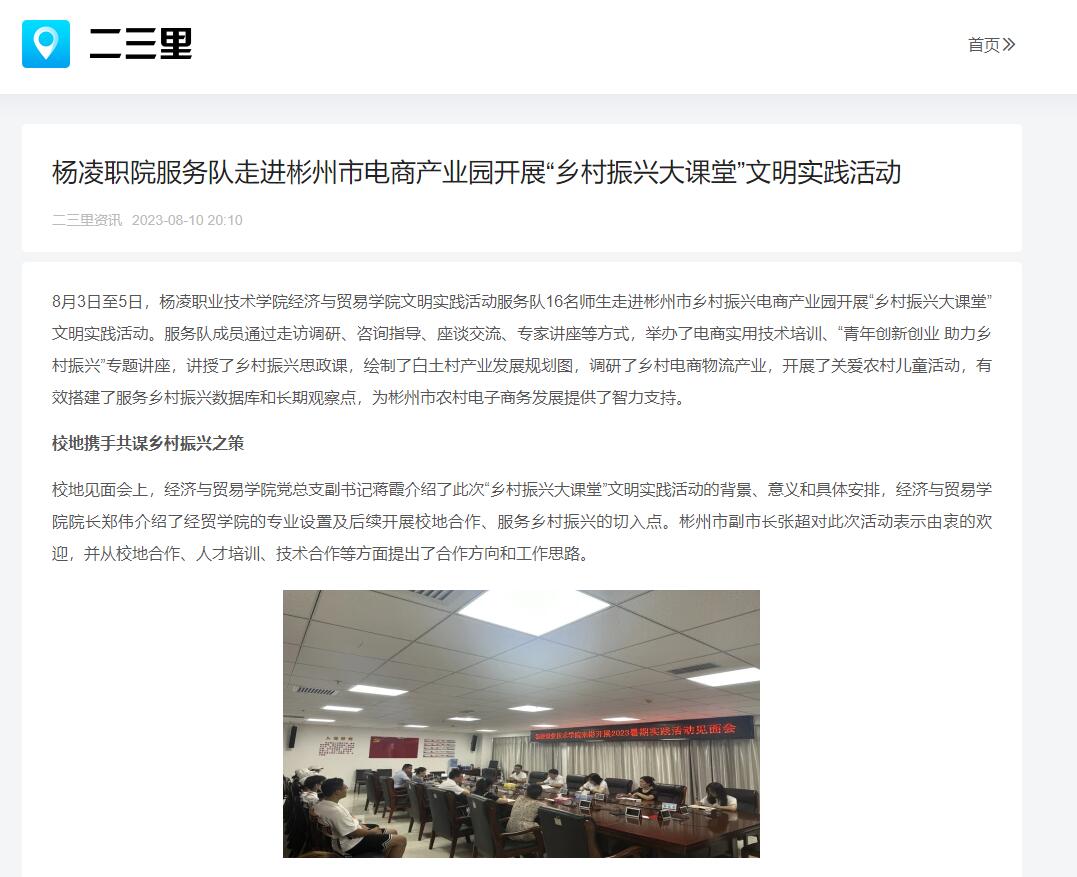 8月3日至5日,350vip浦京集团官网经济与贸易学院文明实践活动服务队16名师生走进彬州市乡村振兴电商产业园开展“乡村振兴大课堂”文明实践活动。服务队成员通过走访调研、咨询指导、座谈交流、专家讲座等方式,举办了电商实用技术培训、“青年创新创业 助力乡村振兴”专题讲座,讲授了乡村振兴思政课,绘制了白土村产业发展规划图,调研了乡村电商物流产业,开展了关爱农村儿童活动,有效搭建了服务乡村振兴数据库和长期观察点,为彬州市农村电子商务发展提供了智力支持。