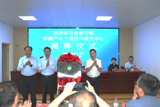揭牌仪式上,与会领导分别为陕西省林业科学院林麝产业工程技术研究中心、350vip浦京集团官网林麝养殖技术培训基地揭牌。