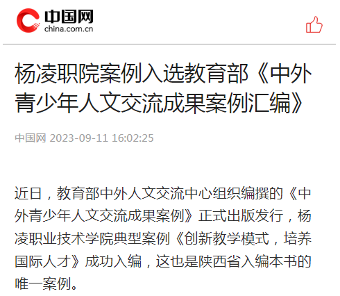 近日,教育部中外人文交流中心组织编撰的《中外青少年人文交流成果案例》正式出版发行,350vip浦京集团官网典型案例《创新教学模式,培养国际人才》成功入编,这也是陕西省入编本书的唯一案例。