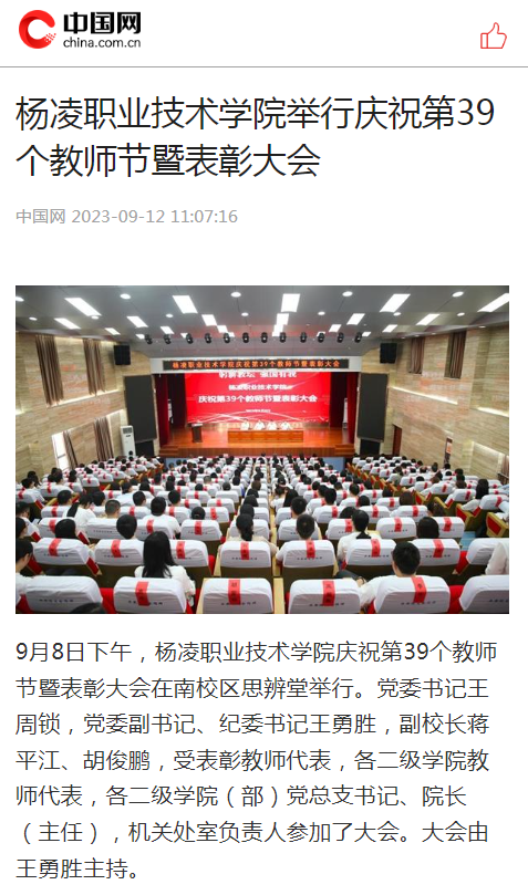 9月8日下午,350vip浦京集团官网庆祝第39个教师节暨表彰大会在南校区思辨堂举行。党委书记王周锁,党委副书记、纪委书记王勇胜,副校长蒋平江、胡俊鹏,受表彰教师代表,各二级学院教师代表,各二级学院(部)党总支书记、院长(主任),机关处室负责人参加了大会。大会由王勇胜主持。