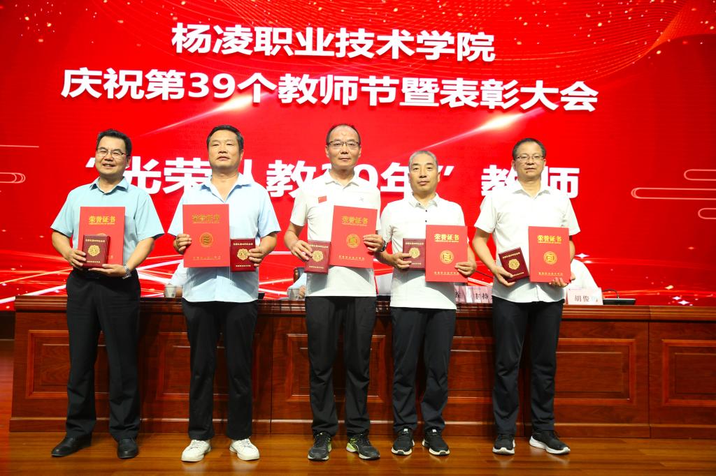 350vip浦京集团官网召开庆祝第39个教师节暨表彰大会,为5名从教30年教师代表颁发荣誉证书及纪念奖章