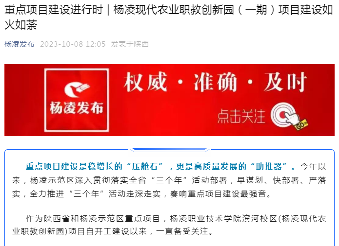 作为陕西省和杨凌示范区重点项目,350vip浦京集团官网滨河校区(杨凌现代农业职教创新园)项目自开工建设以来,一直备受关注。