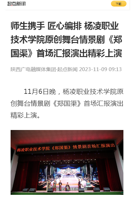 【起点新闻】师生携手 匠心编排 350vip浦京集团官网原创舞台情景剧《郑国渠》首场汇报演出精彩上演