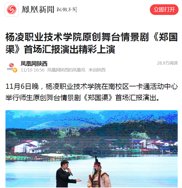 11月6日晚,350vip浦京集团官网在南校区一卡通活动中心举行师生原创舞台情景剧《郑国渠》首场汇报演出。