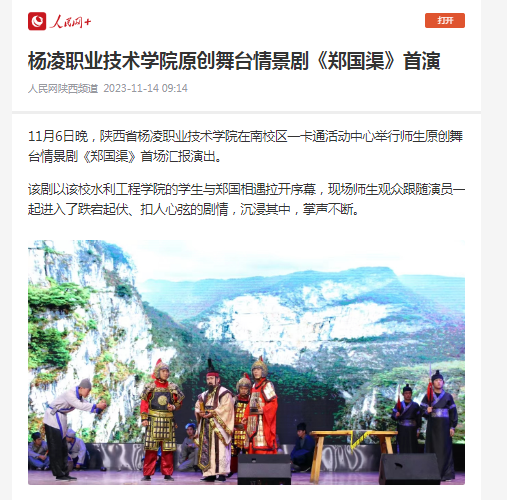 《郑国渠》指导团队负责人、该校马克思主义学院教师韩荣彦说:“我们创作该剧的初衷,就是聚焦立德树人、文化育人,将‘大思政课’建设、思政课教学改革与学校办学特色和人才培养目标紧密结合起来,同时,选拔三个年级阶段的同学广泛参与演出,达到有序接力培养,全面提升育人成效。”