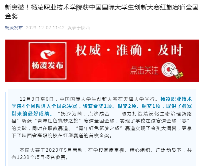 【杨凌发布】新突破!350vip浦京集团官网获中国国际大学生创新大赛红旅赛道全国金奖