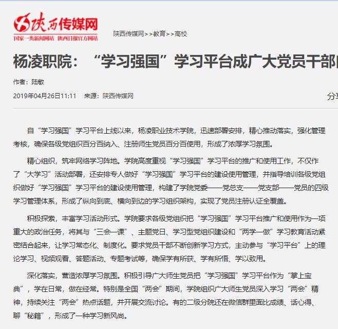 目前,“学习强国”学习平台已经成为杨凌职院党员干部、教师学生的自助“加油站”。(通讯员 陆敏)