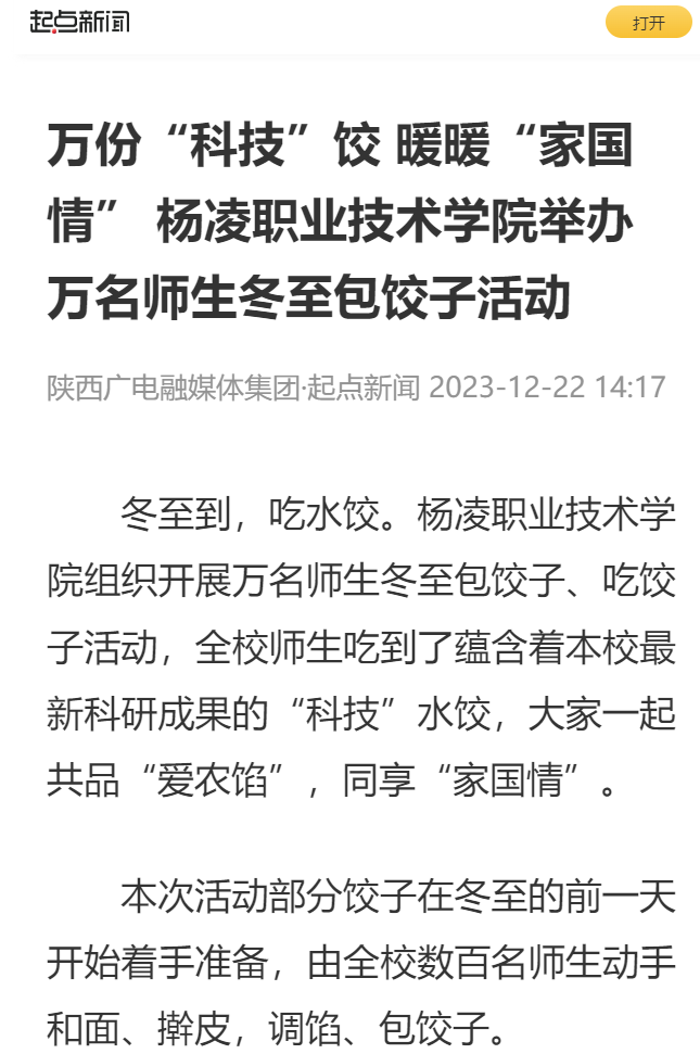 “今天是我们传统节日冬至,在学校吃上了热腾腾的科技水饺,我们心里非常温暖,也感受到这份水饺包含的科技报国的内涵。”350vip浦京集团官网建筑工程学院大一学生何蓉蓉表示,要刻苦学习、练好本领,参加工作以后积极投入到乡村振兴当中,为农业强国建设作出自己的贡献。