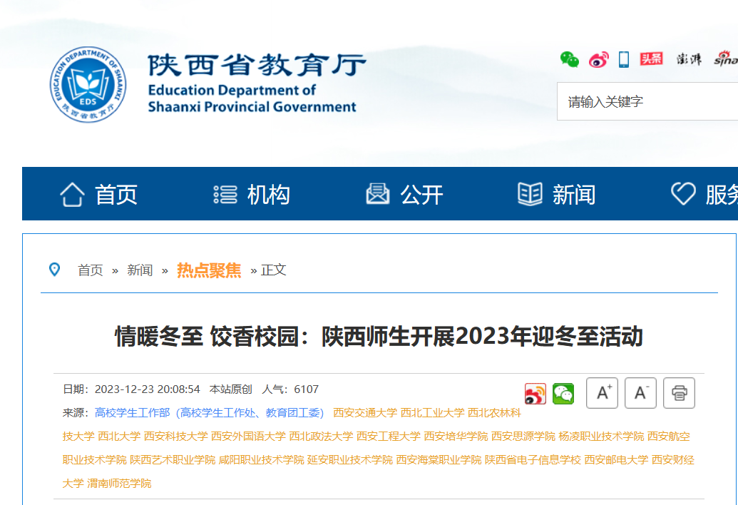 【陕西省教育厅】情暖冬至 饺香校园:陕西师生开展2023年迎冬至活动