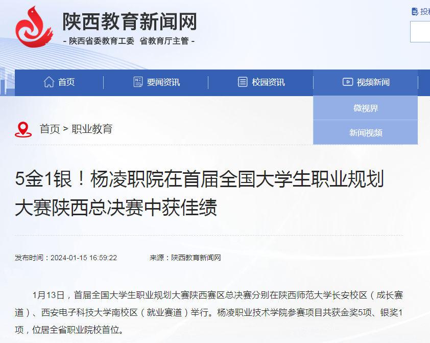 1月13日,首届全国大学生职业规划大赛陕西赛区总决赛分别在陕西师范大学长安校区(成长赛道)、西安电子科技大学南校区(就业赛道)举行。350vip浦京集团官网参赛项目共获金奖5项、银奖1项,位居全省职业院校首位。