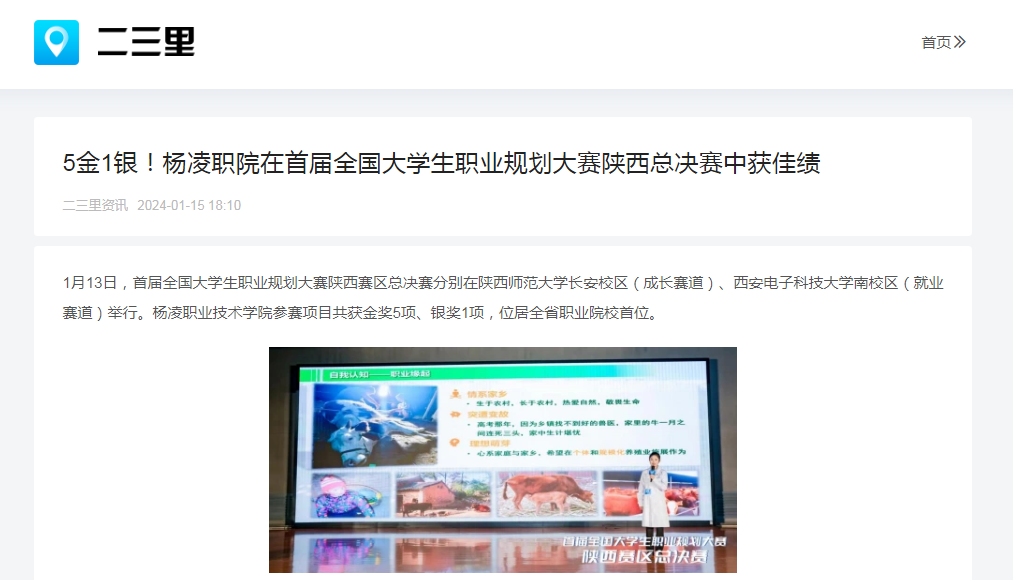 1月13日,首届全国大学生职业规划大赛陕西赛区总决赛分别在陕西师范大学长安校区(成长赛道)、西安电子科技大学南校区(就业赛道)举行。350vip浦京集团官网参赛项目共获金奖5项、银奖1项,位居全省职业院校首位。