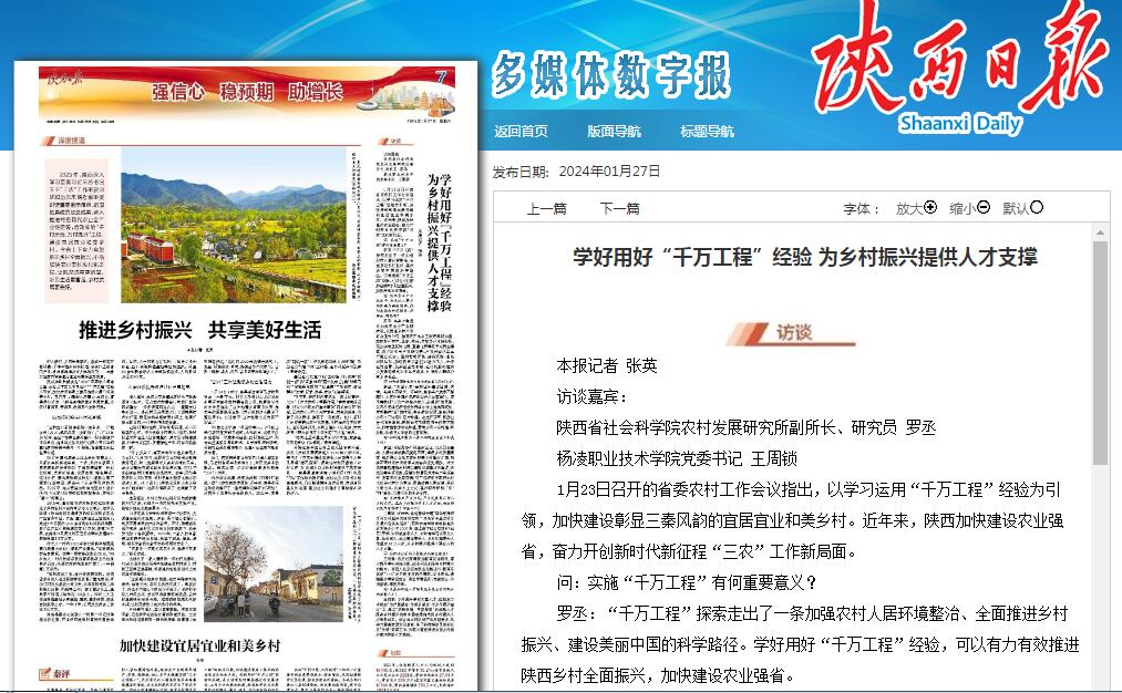罗丞:“千万工程”探索走出了一条加强农村人居环境整治、全面推进乡村振兴、建设美丽中国的科学路径。学好用好“千万工程”经验,可以有力有效推进陕西乡村全面振兴,加快建设农业强省。