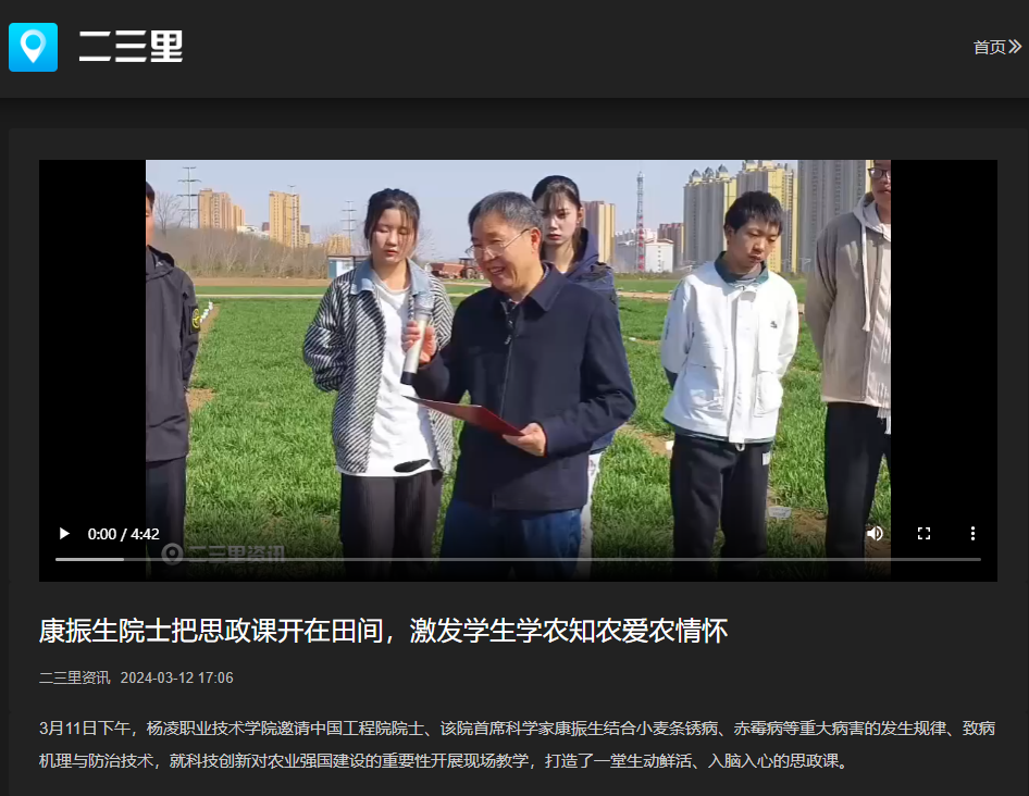 3月11日下午,350vip浦京集团官网邀请中国工程院院士、该院首席科学家康振生结合小麦条锈病、赤霉病等重大病害的发生规律、致病机理与防治技术,就科技创新对农业强国建设的重要性开展现场教学,打造了一堂生动鲜活、入脑入心的思政课。