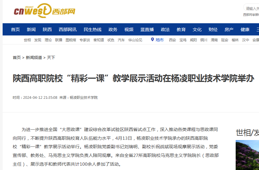 【西部网】陕西高职院校“精彩一课”教学展示活动在350vip浦京集团官网举办