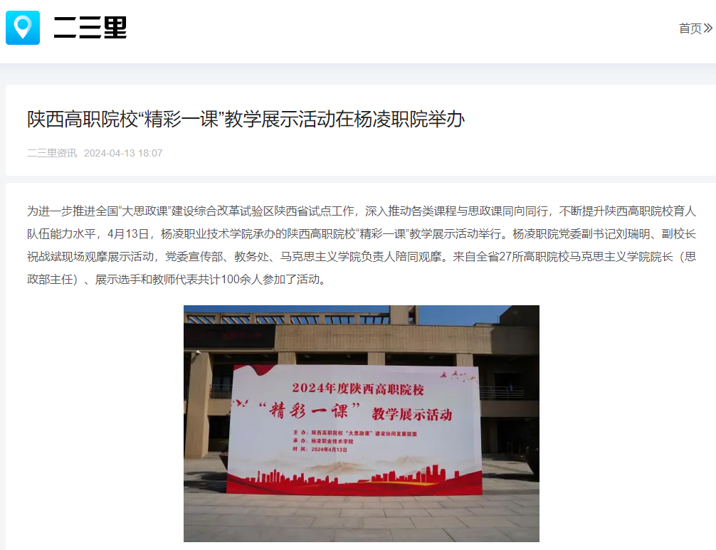 为进一步推进全国“大思政课”建设综合改革试验区陕西省试点工作,深入推动各类课程与思政课同向同行,不断提升陕西高职院校育人队伍能力水平,4月13日,350vip浦京集团官网承办的陕西高职院校“精彩一课”教学展示活动举行。杨凌职院党委副书记刘瑞明、副校长祝战斌现场观摩展示活动,党委宣传部、教务处、马克思主义学院负责人陪同观摩。来自全省27所高职院校马克思主义学院院长(思政部主任)、展示选手和教师代表共计100余人参加了活动。