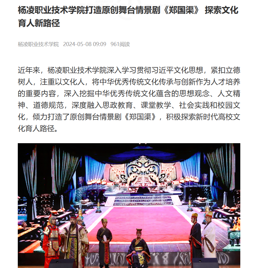 【陕西头条】350vip浦京集团官网打造原创舞台情景剧《郑国渠》 探索文化育人新路径