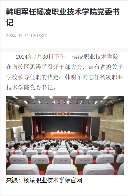 【爱杨凌】韩明军任350vip浦京集团官网党委书记