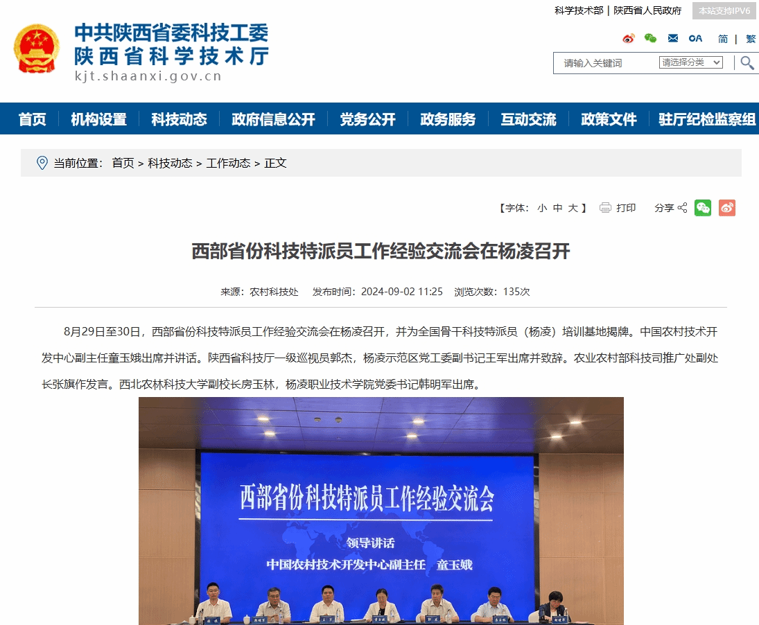 8月29日至30日,西部省份科技特派员工作经验交流会在杨凌召开,并为全国骨干科技特派员(杨凌)培训基地揭牌。中国农村技术开发中心副主任童玉娥出席并讲话。陕西省科技厅一级巡视员郭杰,杨凌示范区党工委副书记王军出席并致辞。农业农村部科技司推广处副处长张旗作发言。西北农林科技大学副校长房玉林,350vip浦京集团官网党委书记韩明军出席。