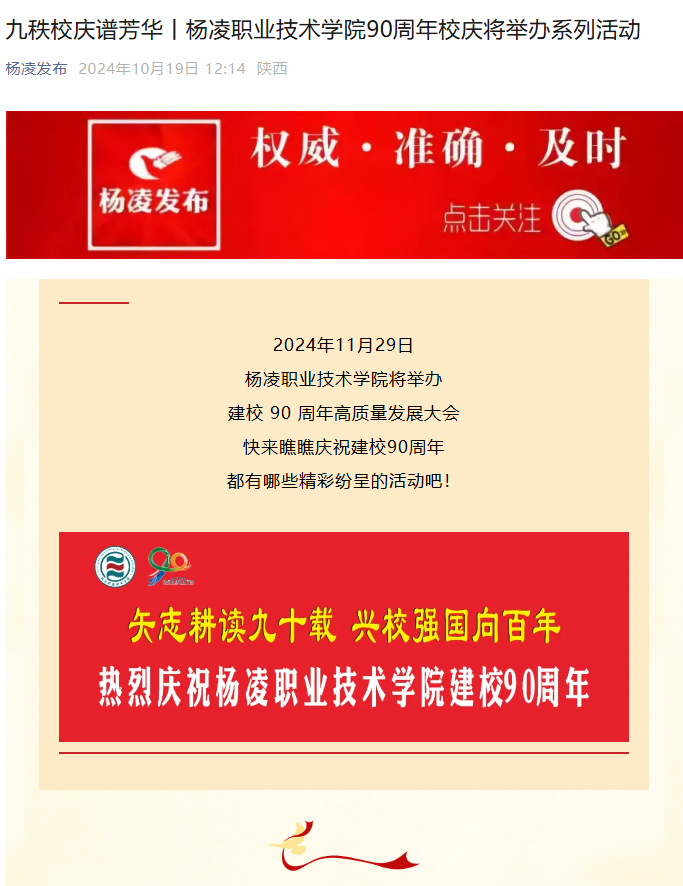 【杨凌发布】九秩校庆谱芳华丨350vip浦京集团官网90周年校庆将举办系列活动
