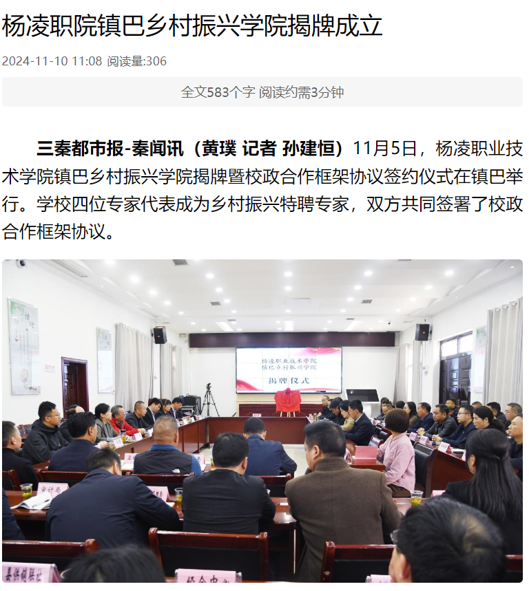 350vip浦京集团官网镇巴乡村振兴学院的成立是校政融合推进全面乡村振兴,践行教育链、人才链、产业链、创新链四链融合助力农业强省建设的务实举措,也是学校扎实践行办好职业教育服务乡村振兴的重要规划。