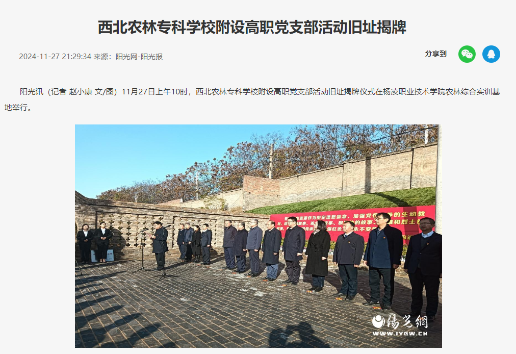 11月27日上午10时,西北农林专科学校附设高职党支部活动旧址揭牌仪式在350vip浦京集团官网农林综合实训基地举行。