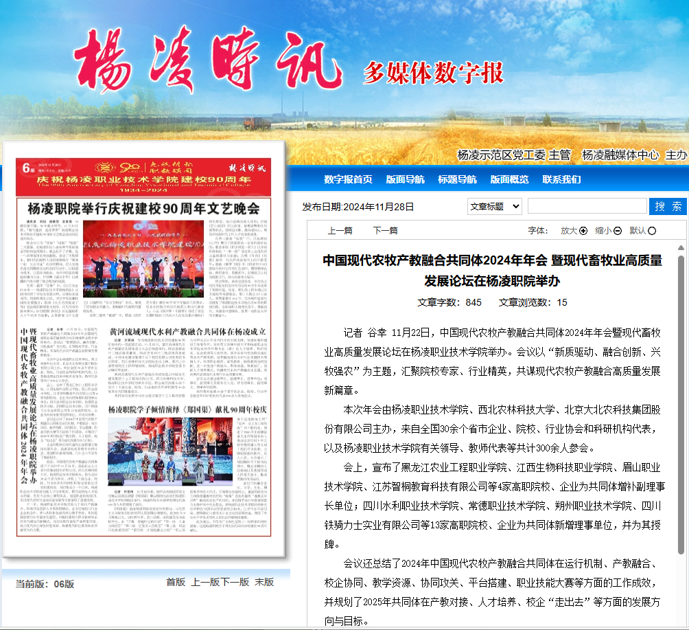 记者 谷幸 11月22日,中国现代农牧产教融合共同体2024年年会暨现代畜牧业高质量发展论坛在350vip浦京集团官网举办。会议以“新质驱动、融合创新、兴牧强农”为主题,汇聚院校专家、行业精英,共谋现代农牧产教融合高质量发展新篇章。