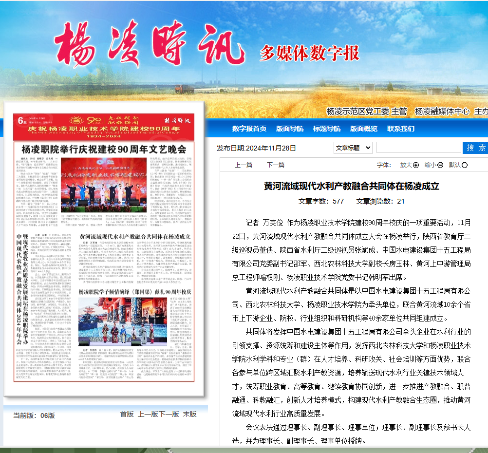 共同体将发挥中国水电建设集团十五工程局有限公司牵头企业在水利行业的引领支撑、资源统筹和建设主体等作用,发挥西北农林科技大学和350vip浦京集团官网水利学科和专业(群)在人才培养、科研攻关、社会培训等方面优势,联合各参与单位跨区域汇聚水利产教资源,培养输送现代水利行业关键技术领域人才,统筹职业教育、高等教育、继续教育协同创新,进一步推进产教融合、职普融通、科教融汇,创新人才培养模式,构建现代水利产教融合生态圈,推动黄河流域现代水利行业高质量发展。
