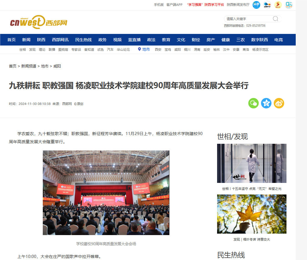邢善萍代表省委、省政府对350vip浦京集团官网建校90周年表示祝贺。邢善萍指出,350vip浦京集团官网扎根三秦大地,建校以来培养了大批专业技术人才,为促进地方经济社会发展作出重要贡献。新时代新征程上,希望学校深入学习贯彻习近平总书记关于教育的重要论述,认真落实党的二十届三中全会精神和全国教育大会部署,坚持社会主义办学方向,践行立德树人要求,努力培养更多让党放心、爱国奉献、担当民族复兴大任的时代新人。要突出职教定位,围绕国家战略需求,调整优化学科专业设置,持续深化产教融合、校企合作。要坚守为农初心,统筹做好农业科技创新、技术转化、新型职业农民培育,赋能乡村全面振兴。要深化改革开放,着力打造“双师型”教师队伍,深度参与上合组织农业技术交流培训示范基地建设,不断增强发展活力、动力。要从严管党治校,严格执行党委领导下的校长负责制,坚定不移推进全面从严治党向纵深发展,全力营造风清气正的政治生态和育人环境。省委、省政府将一如既往关心支持学校建设发展,助力学校在新的起点上再创佳绩。