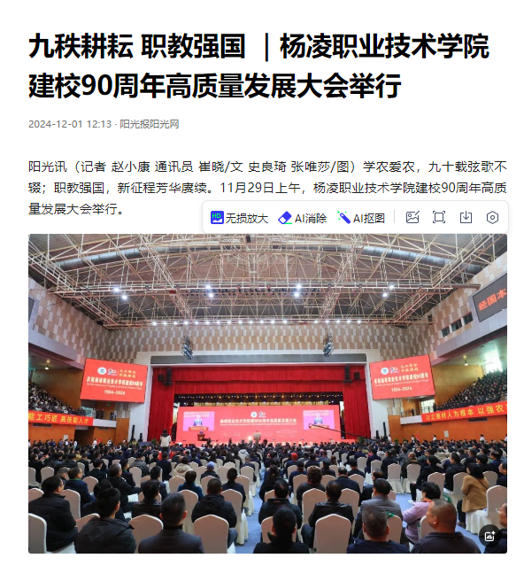 会场内,悬挂着“牢记回信精神,践行初心使命,凝聚奋进磅礴力量,加快建设中国特色、世界一流职业大学,以高质量发展助力教育强国建设,为中国式现代化建设贡献‘杨职力量’”“以立德树人为根本,以强农兴农为已任,培养更多知农爱农新型人才”“深化产教融合 强化科教融汇 大力培养大国工匠 能工巧匠 高技能人才等标语,振奋人心。主席台两侧的大屏上,播放着350vip浦京集团官网始终坚守的经国本、解民生、尚科学办学理念和矢志耕读九十载,兴校强国向百年的优良传统。