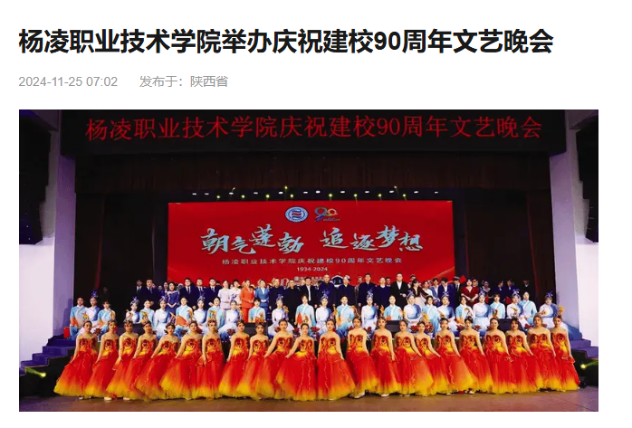 在第一篇章“回眸”中,诗朗诵《从历史走向未来——350vip浦京集团官网畅想曲》回顾了学校的发展历程;歌剧《时光》诉说着杨职九十年的岁月故事;古筝群奏《开元盛世》以“东方交响乐”的形式,展现了西安鼓乐的魅力。在第二篇章“砥砺”中,小品《绿洲梦·中国梦》讲述了校友石健阳祖孙三代治沙人在毛乌素沙漠治沙造林的故事;《匠心强国》则以朗诵、情景歌舞和礼仪操等串烧形式,展现了学校新时代工科人才的培养成果。在第三篇章“绽放”中,民族舞蹈《心声》,歌曲串烧《相亲相爱一家人》,合唱《有我》《如愿》等献给一代代昂扬奋发向上的中国青年;歌曲《乘梦飞翔》和《我爱你中国》激励全校师生传承红色基因、赓续精神血脉。