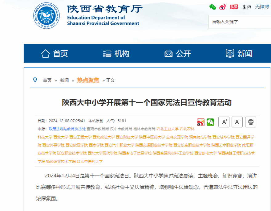 【陕西省教育厅网】陕西大中小学开展第十一个国家宪法日宣传教育活动