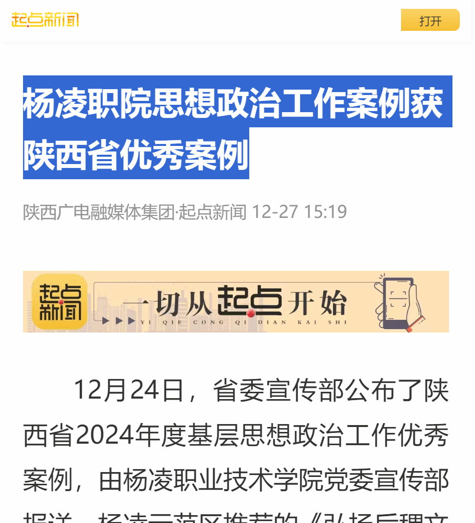 【起点新闻】杨凌职院思想政治工作案例获陕西省优秀案例