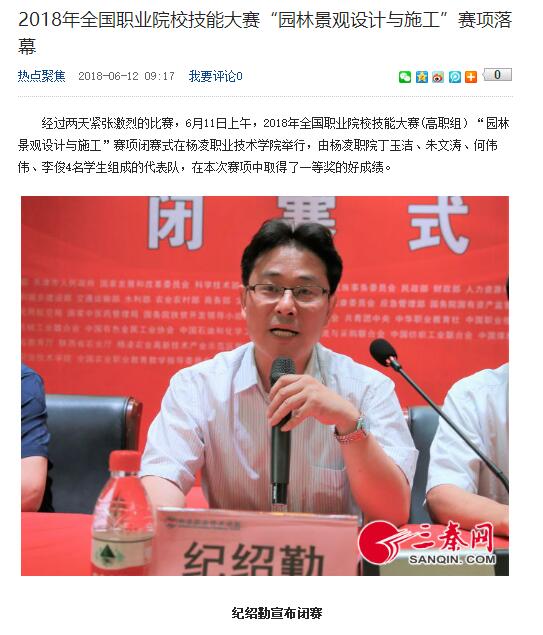 经过两天紧张激烈的比赛,6月11日上午,2018年全国职业院校技能大赛(高职组)“园林景观设计与施工”赛项闭赛式在350vip浦京集团官网举行,由杨凌职院丁玉洁、朱文涛、何伟伟、李俊4名学生组成的代表队,在本次赛项中取得了一等奖的好成绩。