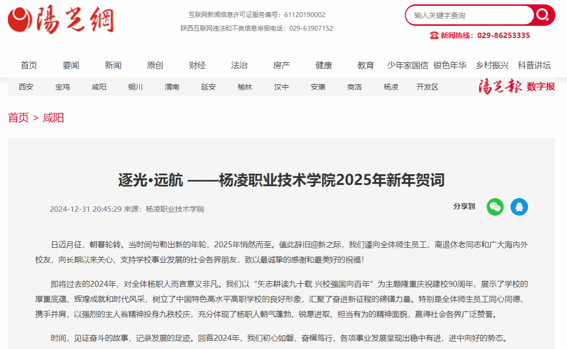 步履不停,春山可望。迈向2025年,我们要始终传承先辈精神,心存希冀、脚步铿锵,坚定用习近平新时代中国特色社会主义思想指导学校高质量发展,着力培养更多知农爱农新型人才,向着“中国特色、世界一流职业大学”的奋斗目标阔步前行,势在实现中华民族伟大复兴的波澜征程中作出无愧于时代的杨职贡献!