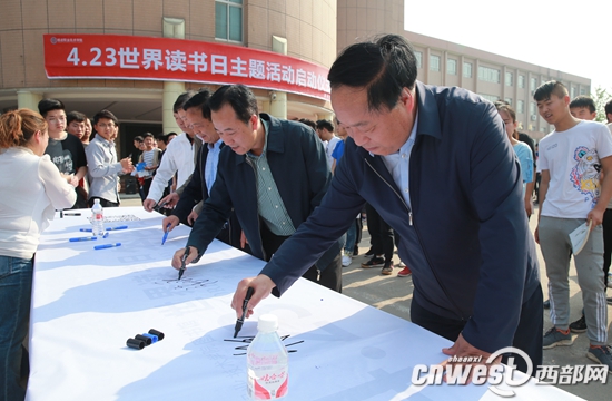 启动仪式结束后,杨凌职院领导们依次在百米长卷读书宣言上签字,传播读书热情。