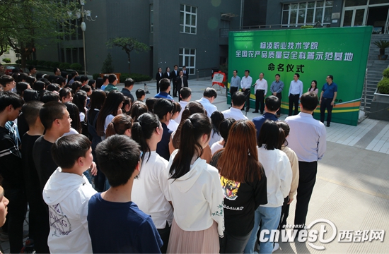 陕西省优农中心主任程晓东、农业农村部农产品质量安全中心黎畅、杨凌示范区农业局局长肖永贤、杨凌职院副院长张永良、生物工程分院负责同志出席了命名仪式。命名仪式由农业农村部农产品质量安全中心技术贸易处副处长张会员主持。