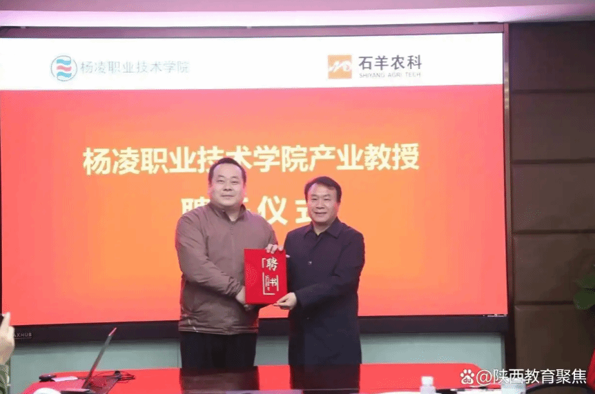 仲伟周与乔冰涛共同为陕西省动物疫病防控工程技术研究中心石羊农科分中心揭牌,王勇胜为石羊农科公司四位技术骨干颁发产业教授聘书,胡俊鹏与常炜代表校企双方签署战略合作协议。