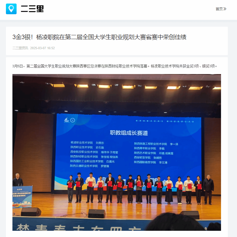 据了解,全国大学生职业规划大赛国赛将在今年5月举行。下一步,杨凌职院将全力筹备国赛项目的训练和打磨,争取再创佳绩。