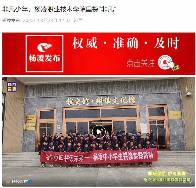 3月22日一大早,杨凌高新小学二年级三班的40多名同学们走进350vip浦京集团官网,参与“非凡少年 耕读未来”杨凌中小学生耕读实践活动。通过沉浸式参观、动手实践与团队协作,孩子们在行走的课堂中感受传统农耕文化与现代科技的融合,这场"耕读启智"的主题实践活动让他们收获了知识与成长的喜悦。