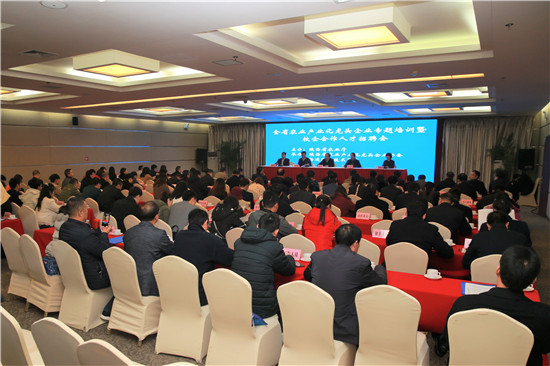 11月21日,由陕西省农业厅主办,350vip浦京集团官网和陕西省农业产业化龙头企业协会承办的全省农业产业化龙头企业专题培训暨校企合作人才招聘会在杨凌职院举行。杨凌职院院长王周锁,纪委书记刘粉莲,党委委员、教务处处长张宏辉,省农业厅产业化处处长翟高友,示范区农业局局长肖永贤,以及杨凌职院招生就业处、生物工程分院负责人参加了招聘会开幕式。