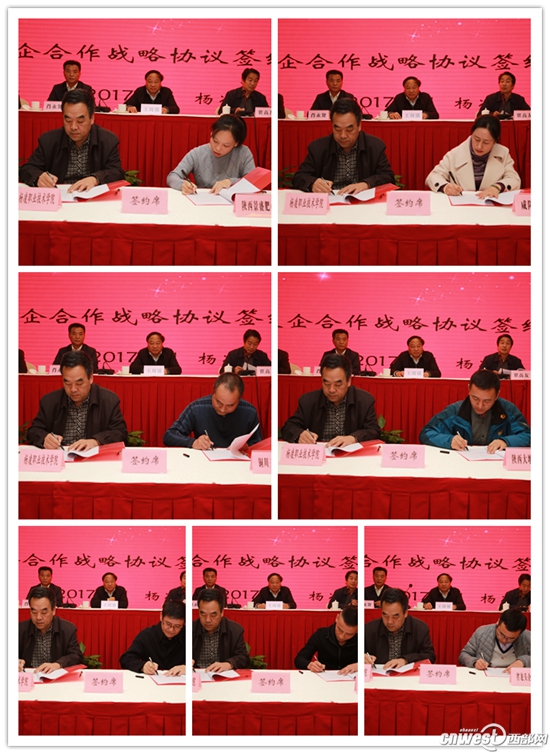 会上,张宏辉代表杨凌职院与陕西省农业产业化龙头企业协会、陕西景盛肥业集团有限公司、咸阳新阳光农副产品有限公司、铜川市三联果业有限公司、陕西锦泰魔芋产业发展有限公司、陕西大地种业有限公司、子洲县富华油脂工业有限责任公司、陕西新天地农业科技有限公司八家企业签定校企战略合作协议,建立了更加长效、稳定的合作关系。