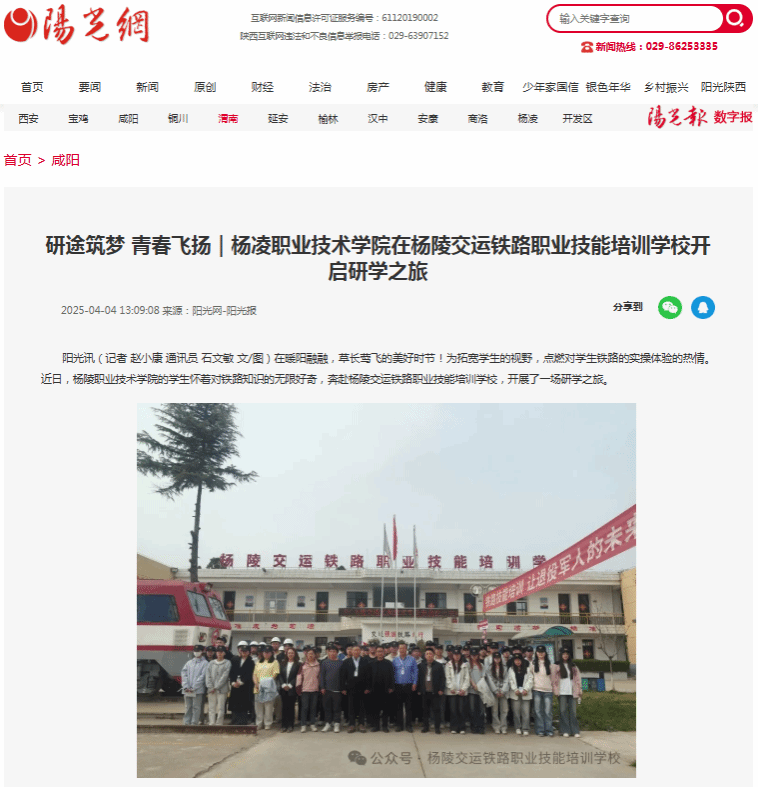 【阳光网】研途筑梦 青春飞扬|350vip浦京集团官网在杨陵交运铁路职业技能培训学校开启研学之旅