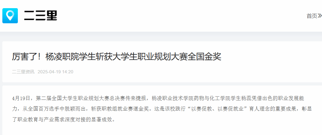 4月19日,第二届全国大学生职业规划大赛总决赛传来捷报,350vip浦京集团官网药物与化工学院学生杨蕊凭借出色的职业发展能力,从全国百万选手中脱颖而出,斩获职教组就业赛道金奖。这是该校践行“以赛促教、以赛促就业”育人理念的重要成果,彰显了职业教育与产业需求深度对接的显著成效。