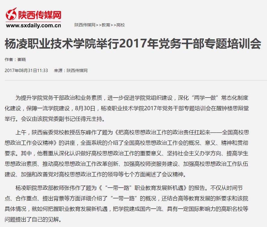 杨凌职院思政部教师张伟作了题为《“一带一路”职业教育发展新机遇》的报告。不仅从时间节点、合作重点、提出背景等方面详细介绍了“一带一路”的概况,还结合高等教育发展的新要求和该院具体情况,就如何把握职业教育发展新机遇,把学院建成国内一流、具有一定国际影响力的高职名校等问题提出了自己的见解。