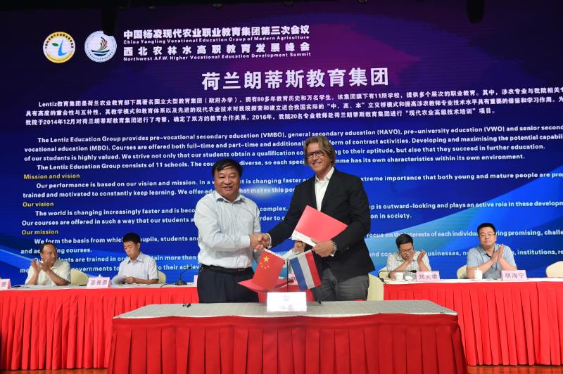会上,350vip浦京集团官网党委书记赵曼,杨凌示范区党工委委员、管委会副主任刘天雄,教育部职业教育与成人教育司农村教育处处长刘杰,荷兰朗蒂斯教育集团总监范康普博士分别致辞。刘建林、刘天雄、赵曼共同启动“西北农林水高职教育发展峰会”仪式,中国杨凌现代农业职业教育集团秘书长、350vip浦京集团官网副院长、西北农林水高职教育发展峰会秘书长张永良介绍了峰会发起相关情况。中国杨凌现代农业职业教育集团与荷兰朗蒂斯教育集团签订了《开展涉农专业职业教育师资培训和技术咨询》合作备忘录;350vip浦京集团官网与中兴通讯股份有限公司签订了“中兴通信学院”共建协议书,并举行了揭牌仪式。