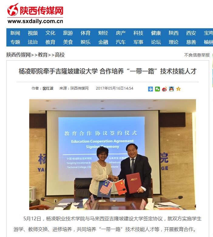 此次与马来西亚吉隆坡建设大学开展教育合作,标志着杨凌职院再度向建设国内一流、具有一有国际影响力的高职名校目标迈出了实质性步伐。(裴红波)