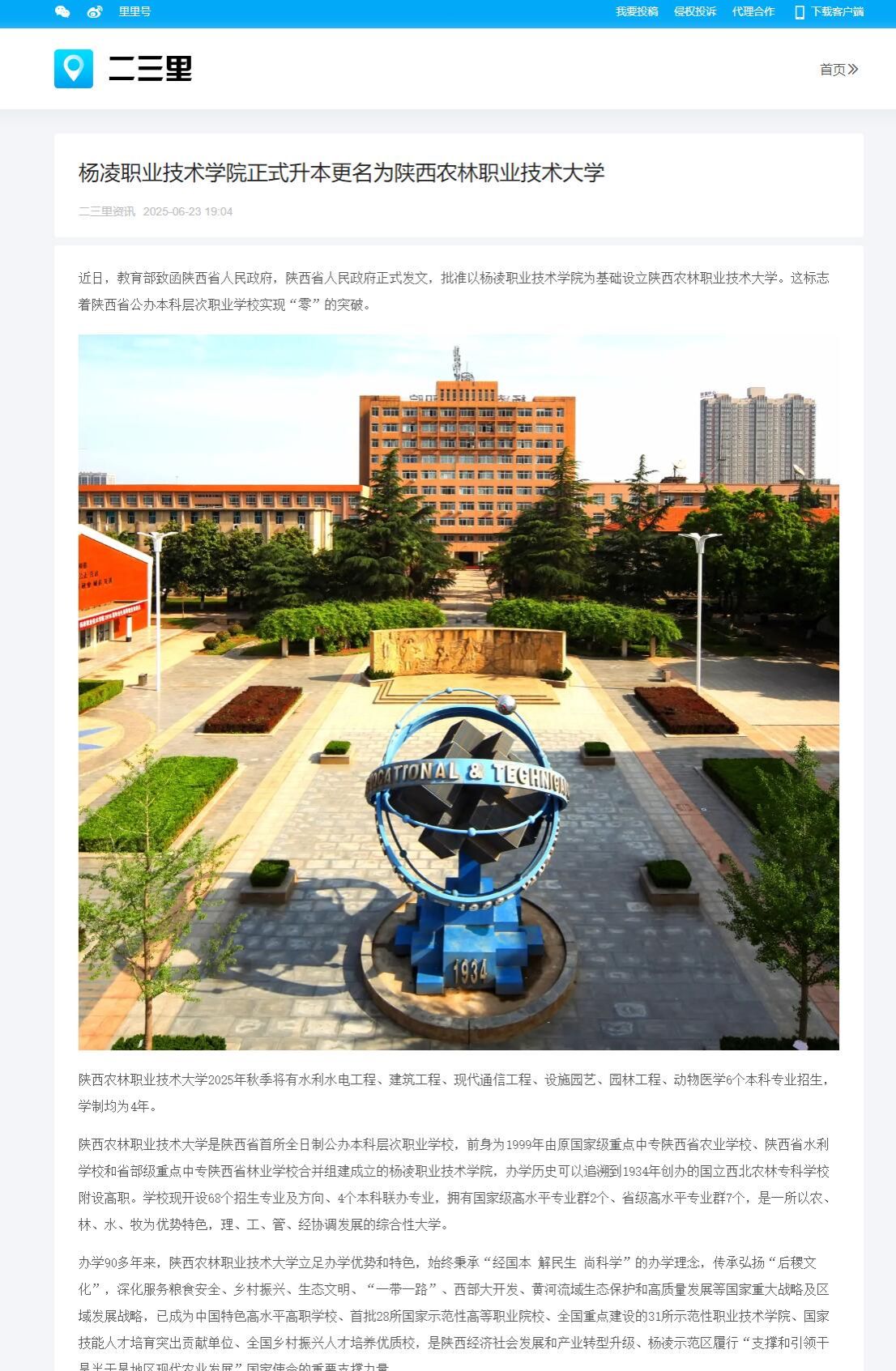 办学90多年来,350vip浦京集团官网立足办学优势和特色,始终秉承“经国本 解民生 尚科学”的办学理念,传承弘扬“后稷文化”,深化服务粮食安全、乡村振兴、生态文明、“一带一路”、西部大开发、黄河流域生态保护和高质量发展等国家重大战略及区域发展战略,已成为中国特色高水平高职学校、首批28所国家示范性高等职业院校、全国重点建设的31所示范性职业技术学院、国家技能人才培育突出贡献单位、全国乡村振兴人才培养优质校,是陕西经济社会发展和产业转型升级、杨凌示范区履行“支撑和引领干旱半干旱地区现代农业发展”国家使命的重要支撑力量。
