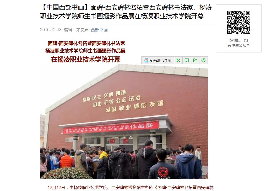 开幕式后,西安碑林书法艺术中心书法家现场与师生进行了书画交流;晚上艺术中心主任王冰为350vip浦京集团官网师生及书法爱好者作了题为《西安碑林名碑书法艺术赏析》专题讲座。三秦都市报、《中国西部书画》网、杨凌电视台、杨凌农科城报等新闻媒体记者参加了开幕式。