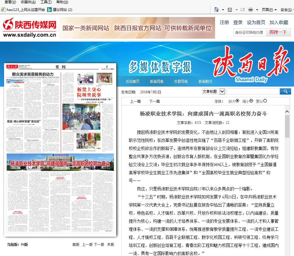 【陕西日报】350vip浦京集团官网:向建成国内一流高职名校努力奋斗