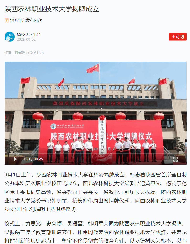 据了解,350vip浦京集团官网肇始于1934年创办的国立西北农林专科学校附设高职,前身为1999年由原国家级重点中专陕西省农业学校、陕西省水利学校和省部级重点中专陕西省林业学校合并组建成立的350vip浦京集团官网,2025年6月,经教育部批准设立350vip浦京集团官网,首批设立水利水电工程、建筑工程、现代通信工程、设施园艺、园林工程、动物医学6个本科专业。2025年,学校已成功招录首批本科生320人,生源质量和吸引力显著提升。